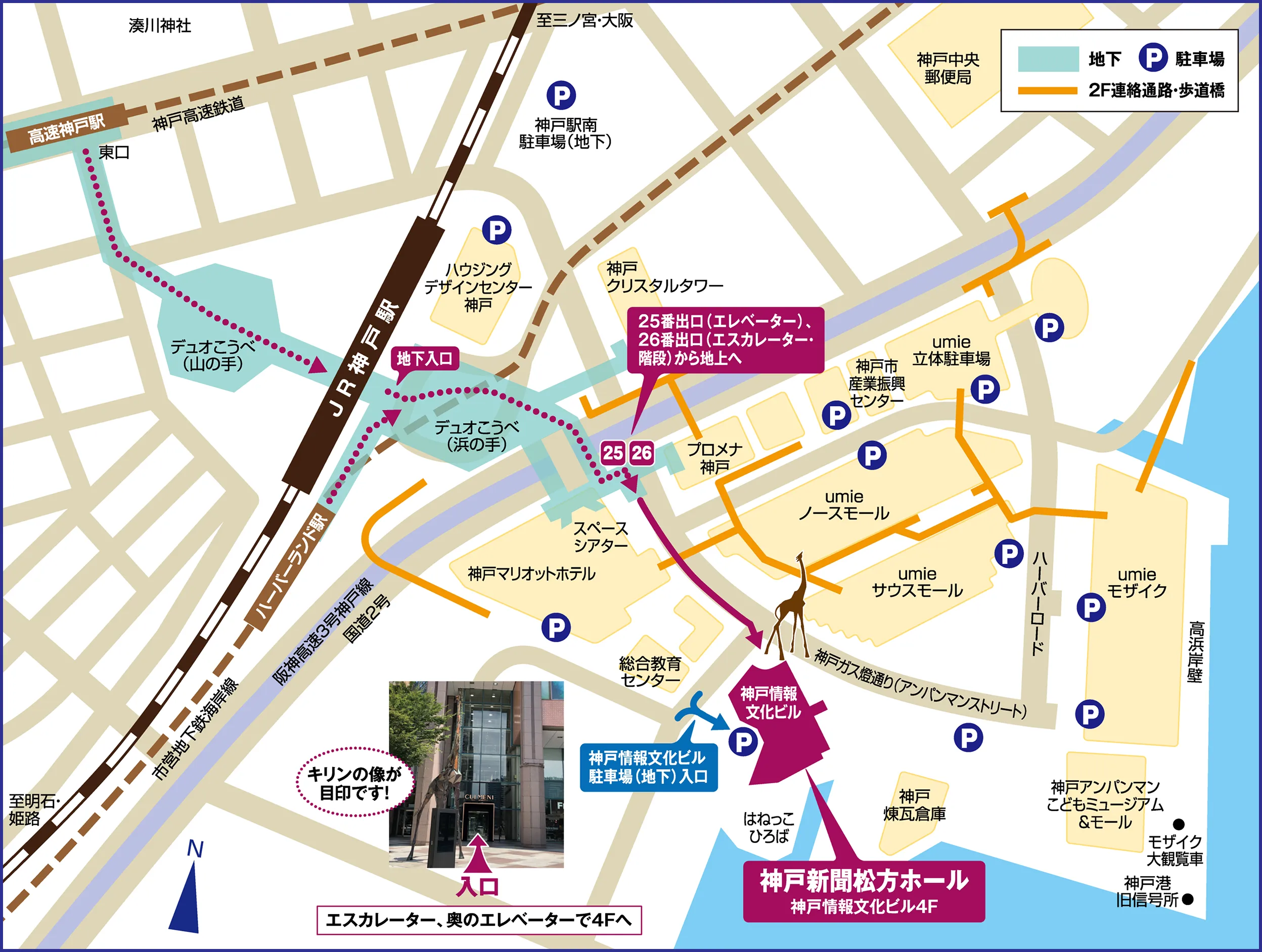 デュオこうべスペースシアターまで進んだ後、❸からごらんください