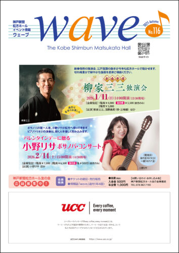 wave No.116 2025 autumn 2025年10月1日 「ウェーブ」とは松方ホールが季刊で発行しているニュースで、神戸新聞文化財団主催の公演案内や関連情報を掲載しています。 wave116のダウンロード