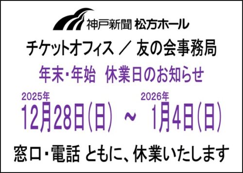 チケットオフィス・友の会事務局 年末年始休業日のお知らせ