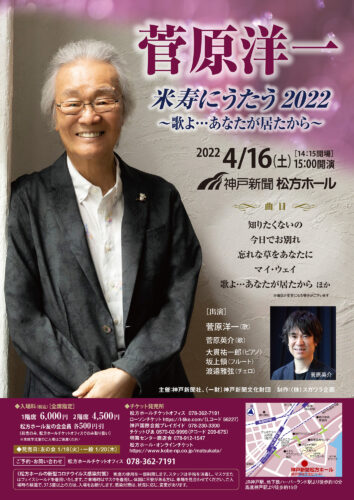 加古川出身、昭和から令和の現在まで活躍を続けている歌手・菅原洋一が松方ホールで3回目のコンサート。昨年発表の新曲を含む自身のヒット曲をはじめ、日本の歌謡史を彩ってきた名曲を、たっぷりと披露。長男の歌手・菅原英介らが共演します。