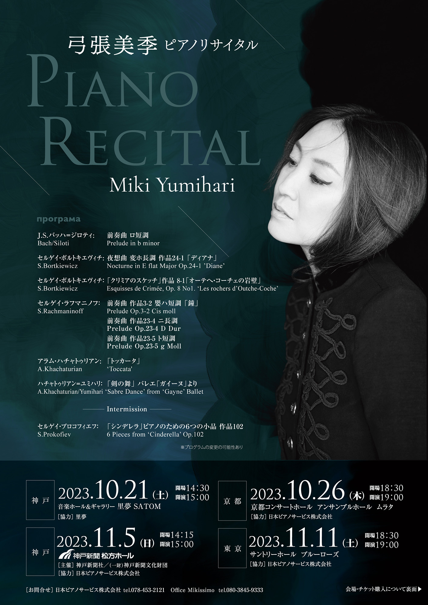 神戸出身、ドイツを拠点に活動中のピアニスト弓張美季による、毎秋恒例のリサイタル。日本ピアノサービス提供のニューヨーク・スタインウェイを使用。知る人ぞ知る作曲家ボルトキエヴィチを取り上げるなど、ウクライナにこだわったプログラムに挑みます。