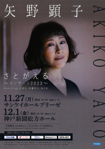 矢野顕子さとがえるコンサート2023 主催公演 クリックで拡大します 日時 2023年12月1日(金) 開場 18:30 開演 18:00 出演 矢野顕子 ほか 料金 全席指定 一般¥9,900 ※3歳未満入場不可 お問い合わせ キョードーインフォメーション 0570-200-888