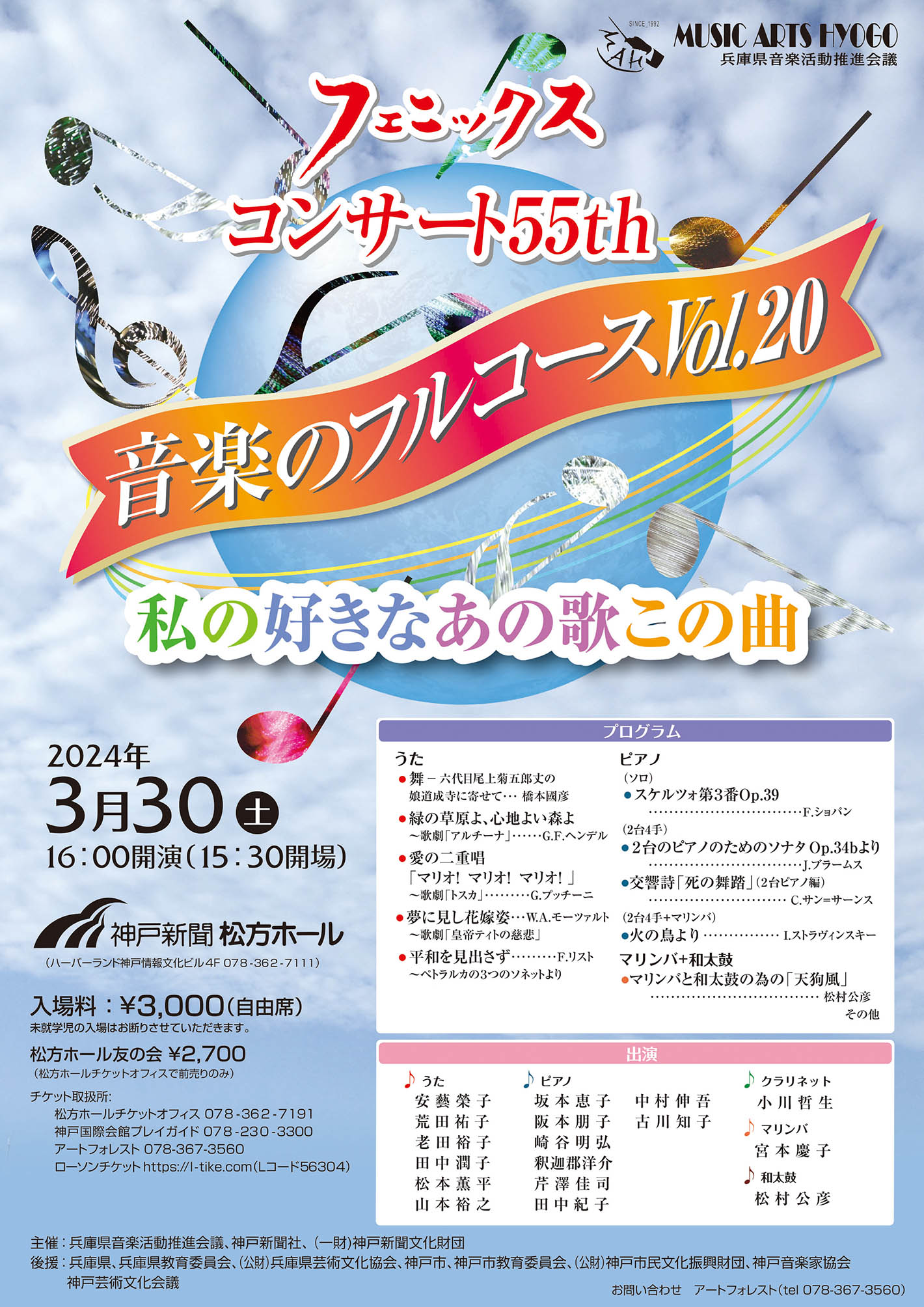 兵庫県音楽活動推進会議に所属する声楽と器楽の実力者たちが、さまざまな編成で、音楽の魅力を伝えます。