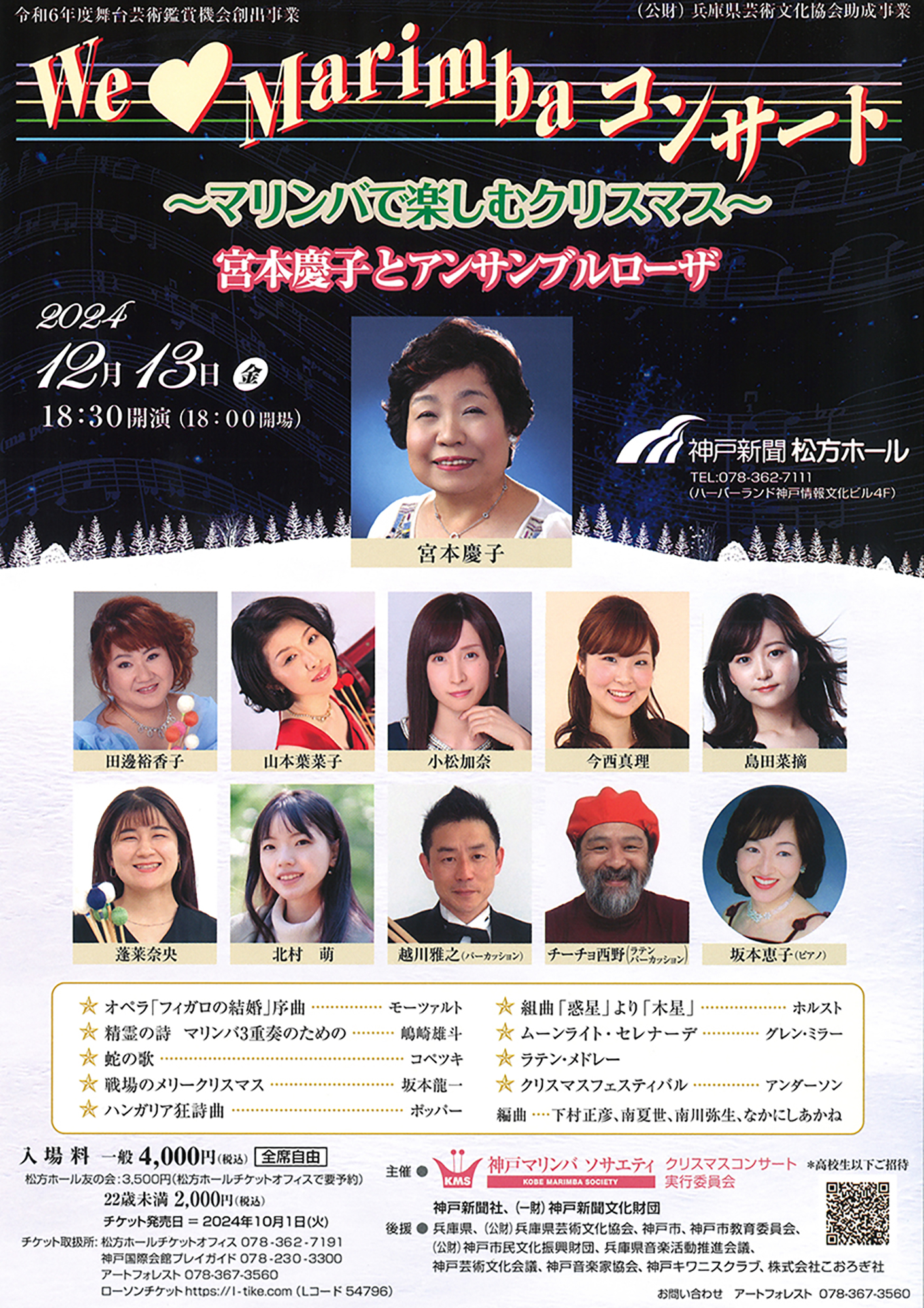 宮本慶子をはじめとするマリンバの名手らが今年も、楽しいクリスマスコンサートを繰り広げます。