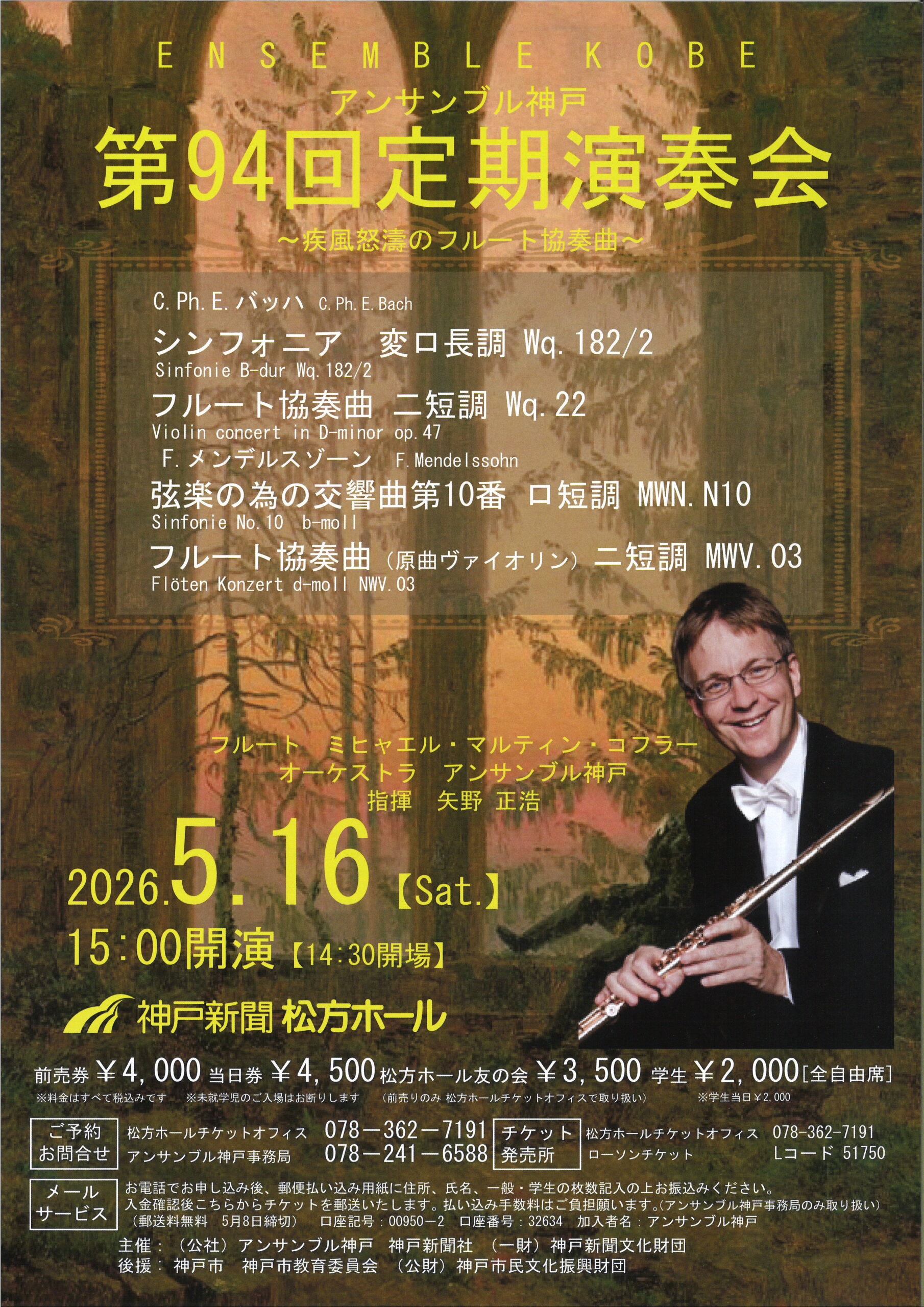 (前売のみ、松方ホールチケットオフィスでのみ取り扱い)チケット好評発売中- 松方ホールチケットオフィス: 078-362-7191